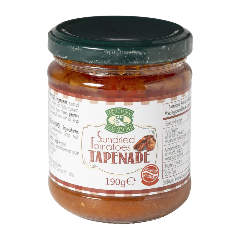 Deze tapenade zit vol smaak en is een echte meditterane must-have in je keuken. De smeuïge smaakmaker zit boordevol intense tomatenaroma’s, subtiel verrijkt met kruiden en specerijen. Heerlijk op een stuk knapperig stokbrood, als dip bij groenten of als smaakmaker in je favoriete pasta.