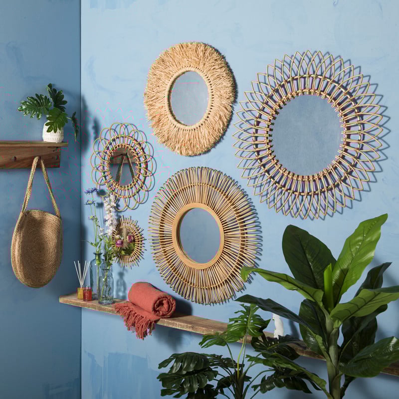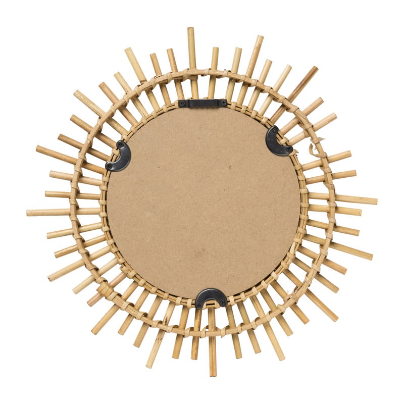 Deze zonnespiegel met rotan rand geeft je meteen een vrolijk gevoel! De ronde spiegel met natuurlijke rand is bovendien helemaal trendy. Hang deze leuke spiegel in het toilet, op je kamer, in de hal of in de tuin. Elke ruimte wordt nog mooier! De spiegel heeft een rand met rotan, een natuurlijk materiaalsoort dat helemaal on-trend is. Combineer de zonnespiegel met andere rotan spiegels in diverse maten.
