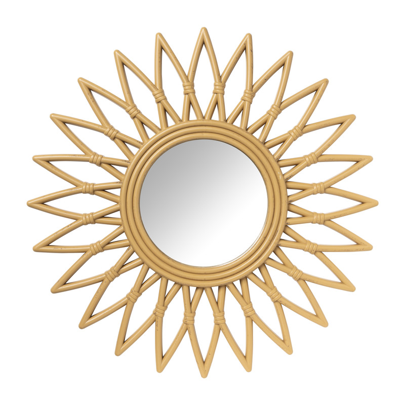 Deze zonnespiegel laat je tuin stralen. De spiegel heeft een rotan look maar is gemaakt van kunststof. Hierdoor kun je 'm gerust buiten ophangen. Al staat 'ie binnenhuis ook prachtig!